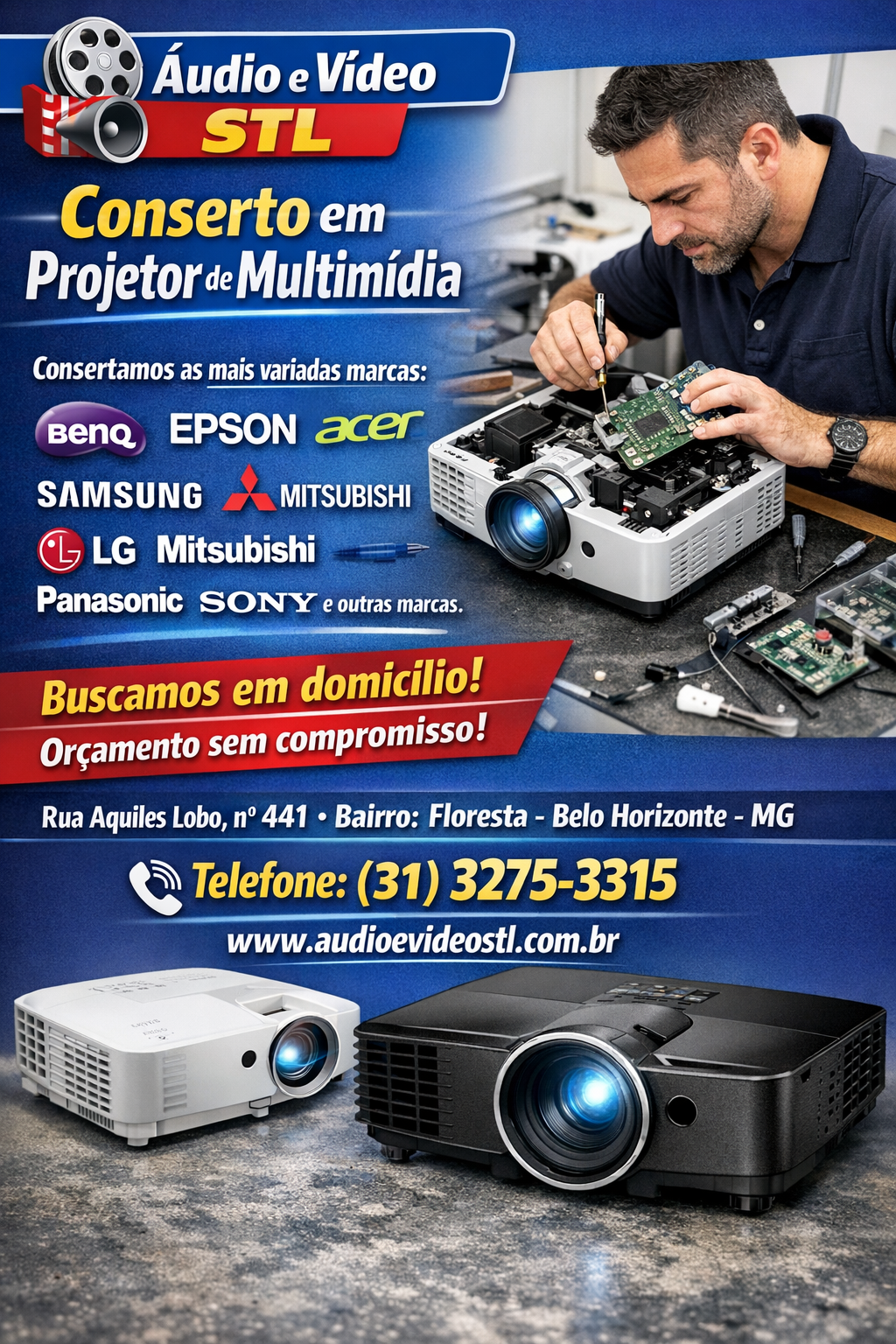 Áudio e Vídeo STL – Especialista em Conserto de Datashow e projetores multimídia em BH. Portanto, se você deseja que seu projetor funcione sempre no máximo, conte com quem tem décadas de experiência e dedicação ao cliente.